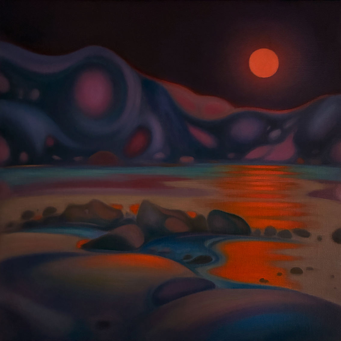 "Between Sky and Earth" is a series of oil on canvas paintings depicting minimalist landscapes in vibrant colors, designed to evoke calm, mental fortitude, and deep contemplation. In a world overwhelmed by stress, instant gratification, and conflict, these works offer a sanctuary -an escape from daily pressures into a peaceful, imaginary realm-. The flowing forms and vivid hues invite viewers to pause and reflect, providing a haven for the mind. Helena Revuelta, April 2024
